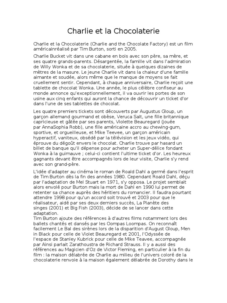Vous pouvez consulter en ligne avec charlie et la chocolaterie etape facile.